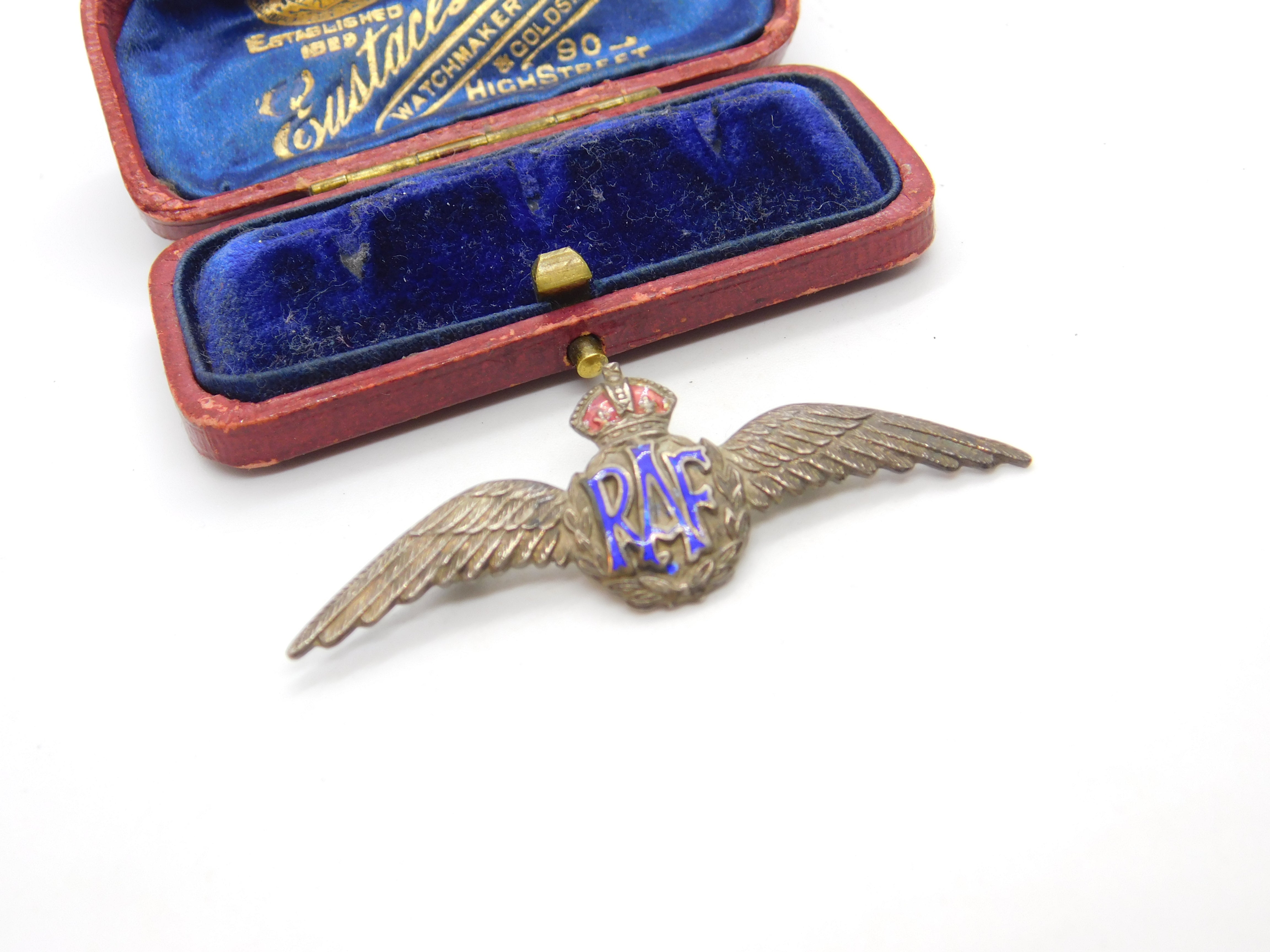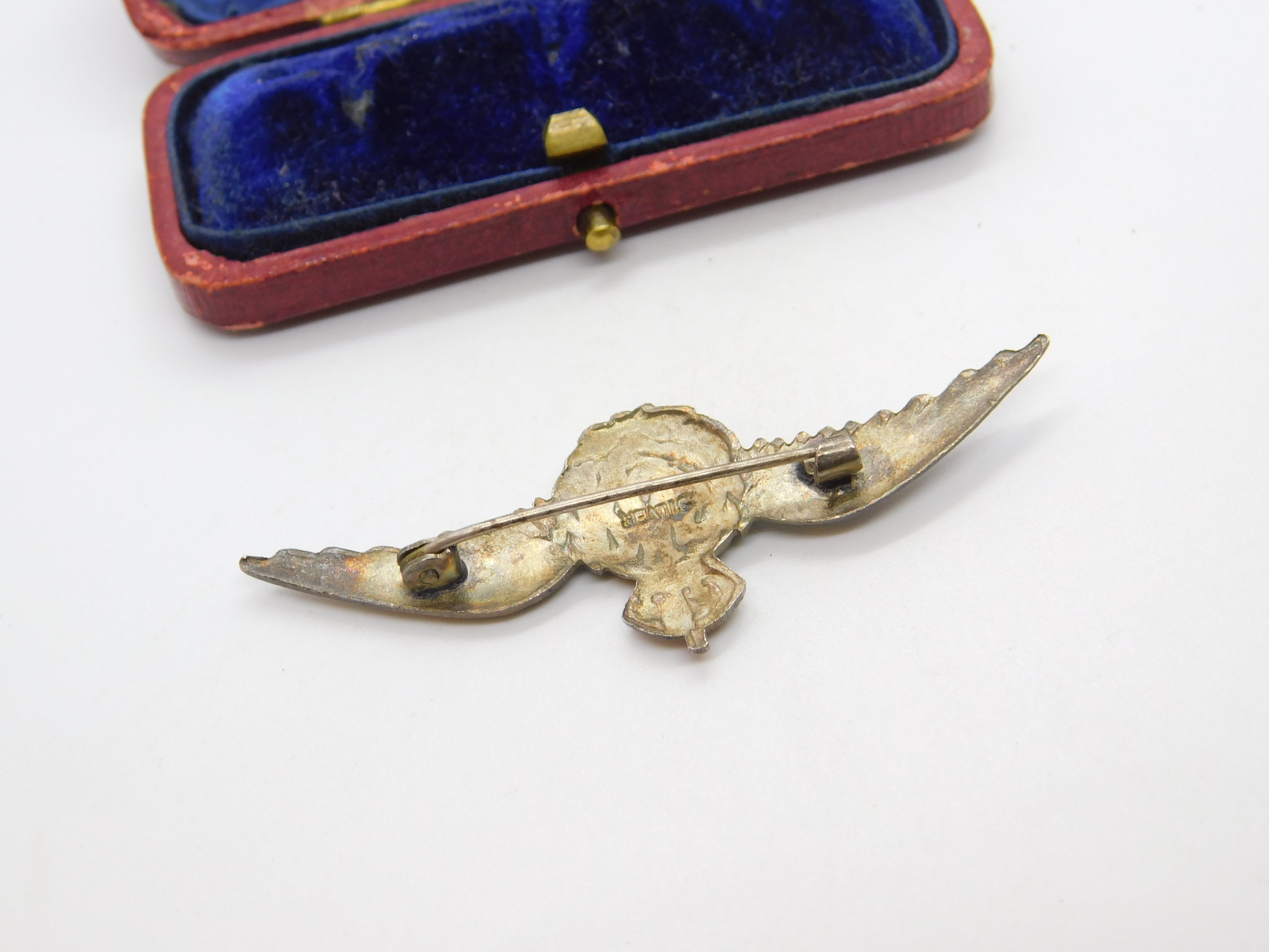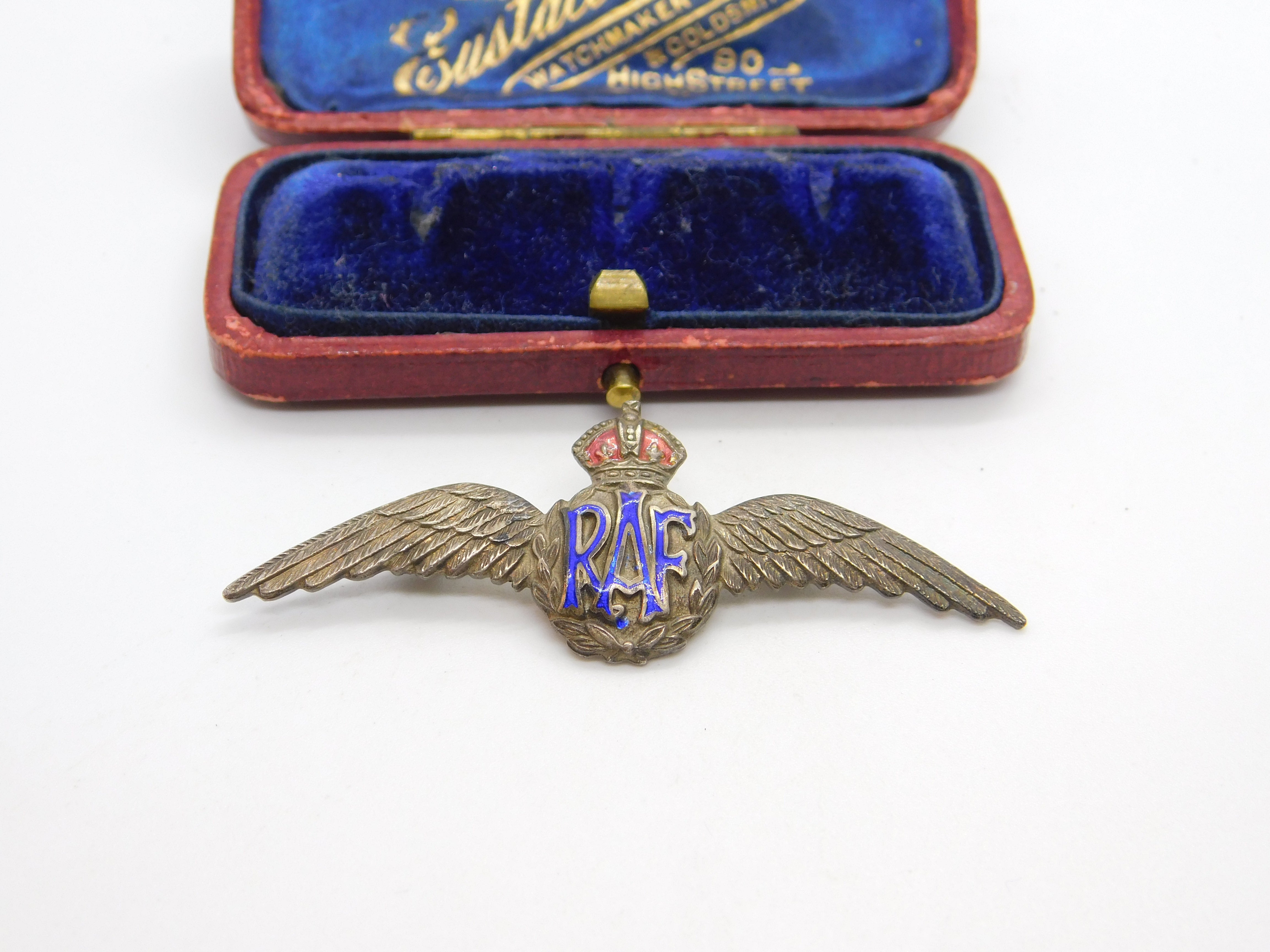 Details: A fantastic and wonderfully designed antique WWII sterling silver & enamel RAF wings sweetheart brooch hallmarked to the reverse c1940. This is a wonderful item that would make a perfect gift or addition to any collection. The BOX pictured is for PRESENTATION ONLY and is NOT included in the listings but used to frame the pictures unless specifically stated otherwise.