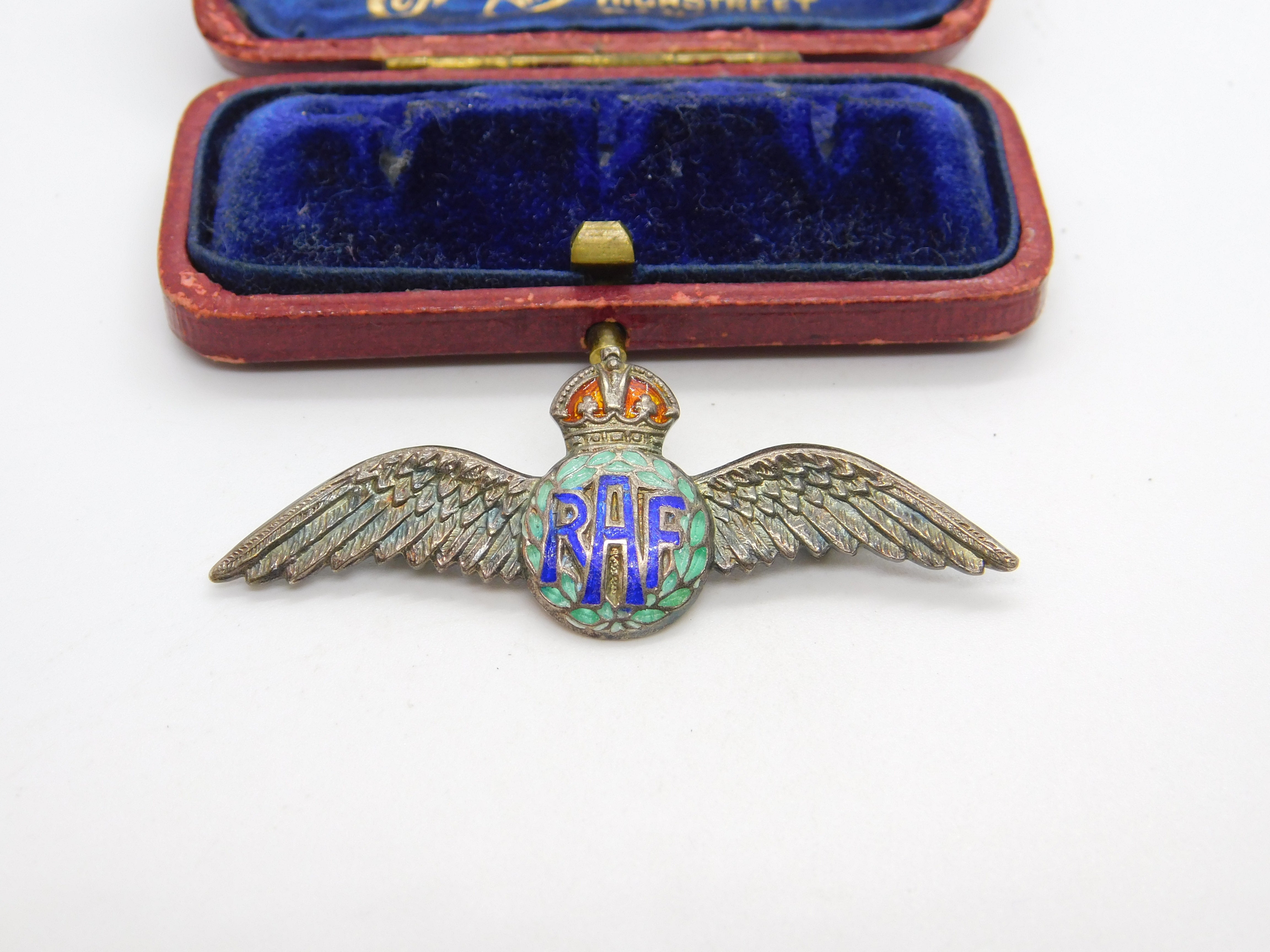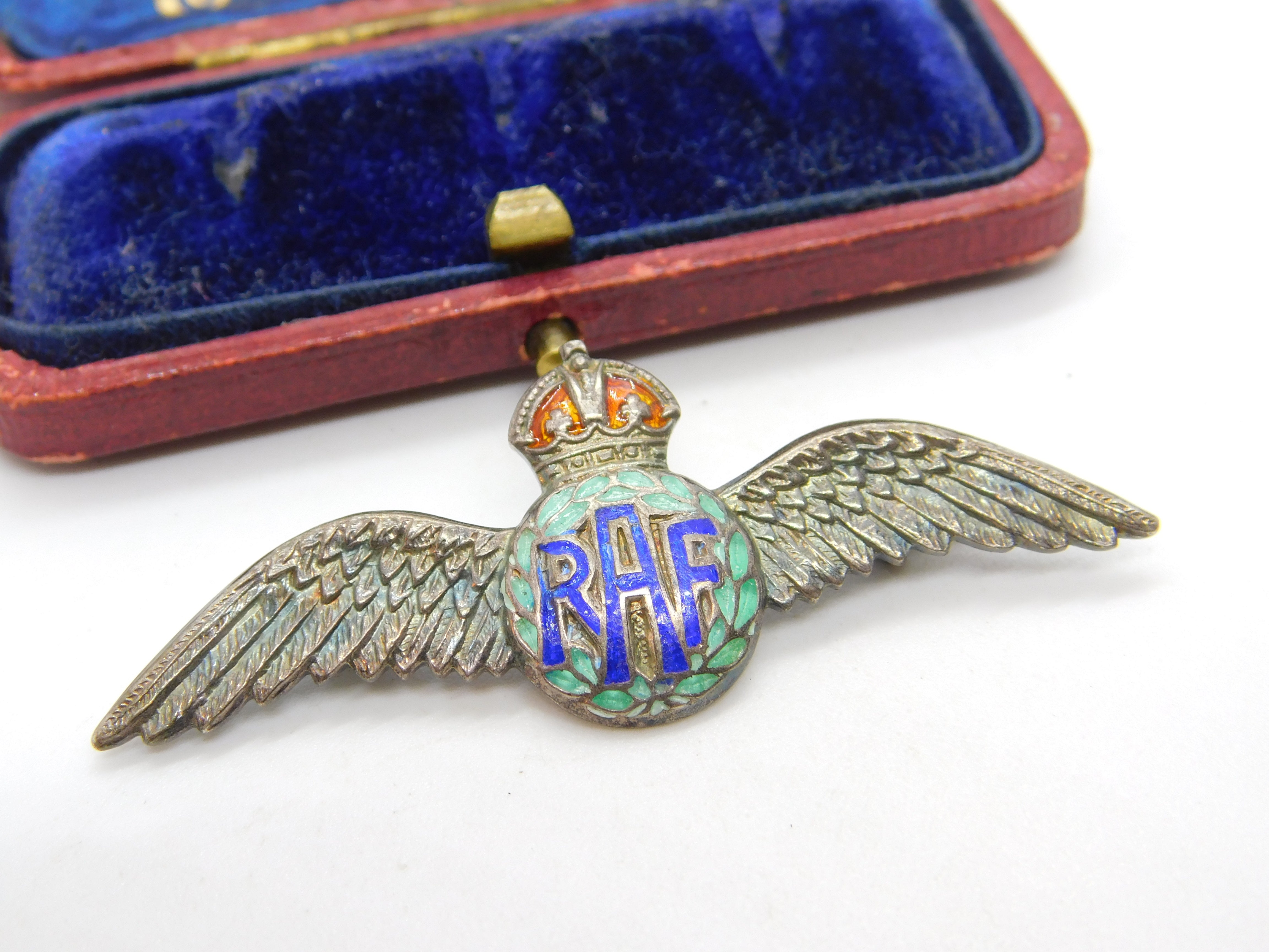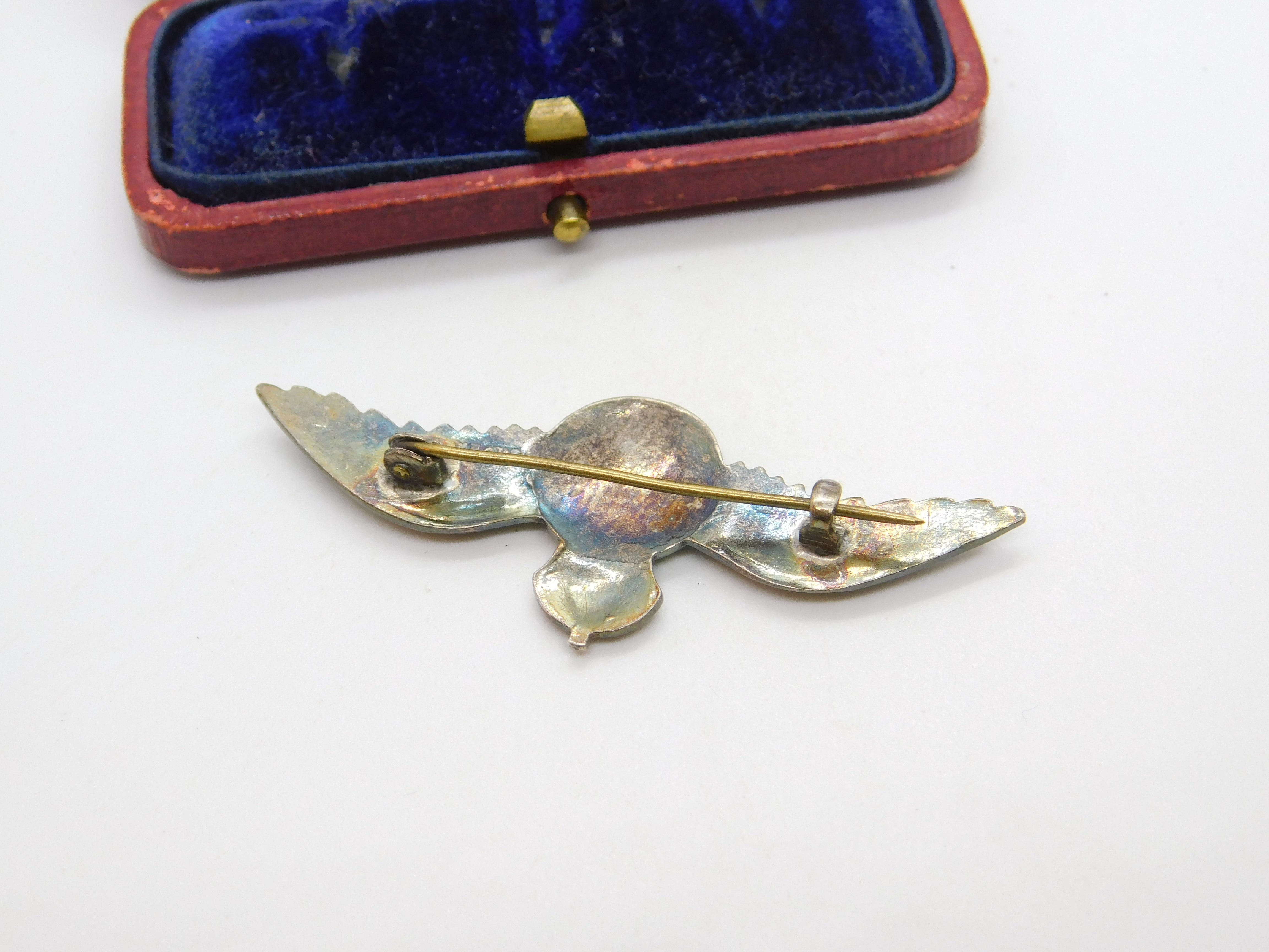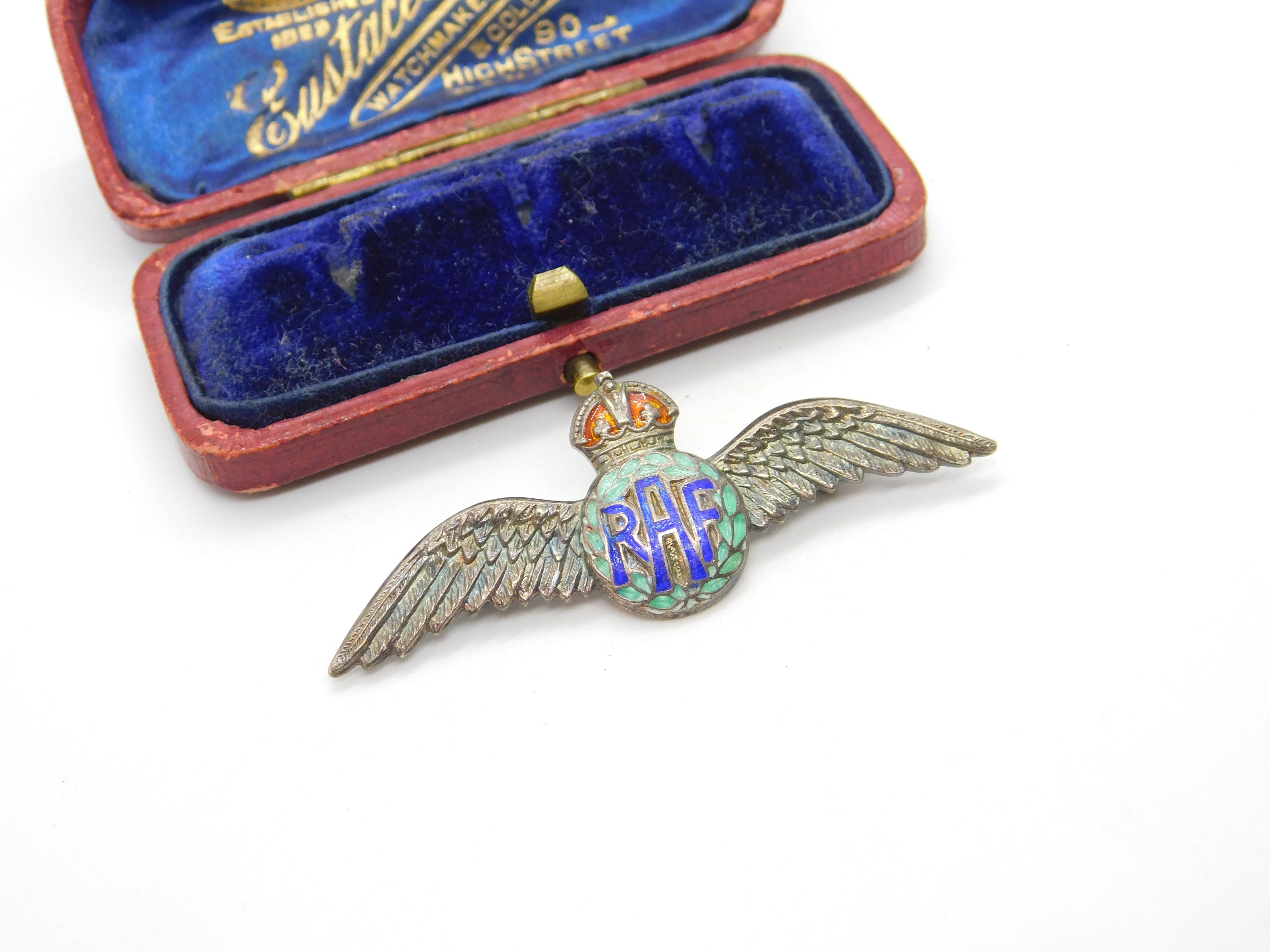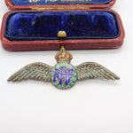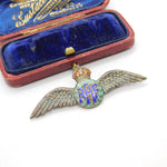 WWII Sterling Silver & Enamel RAF Wings Sweetheart Brooch Antique c1940