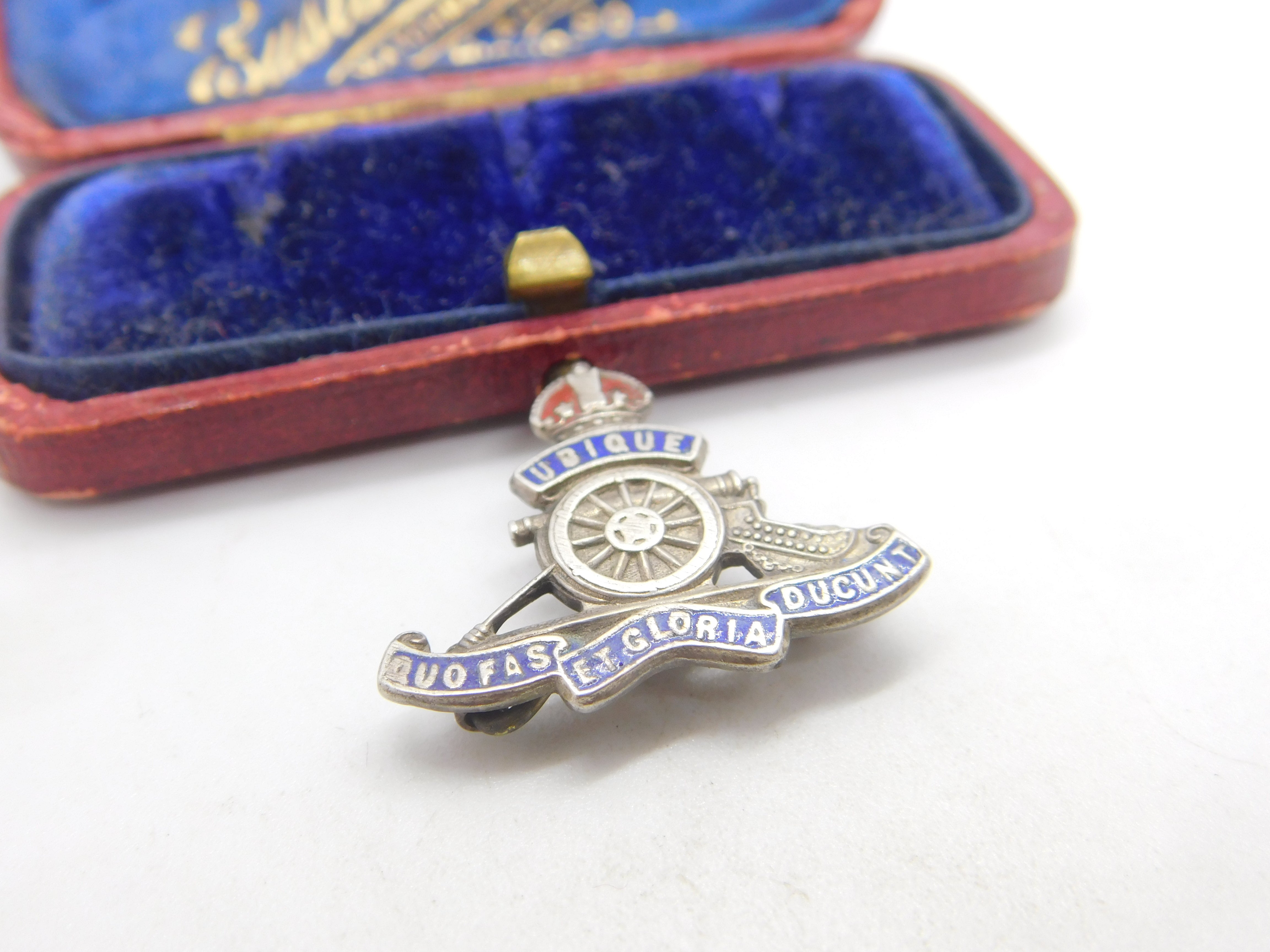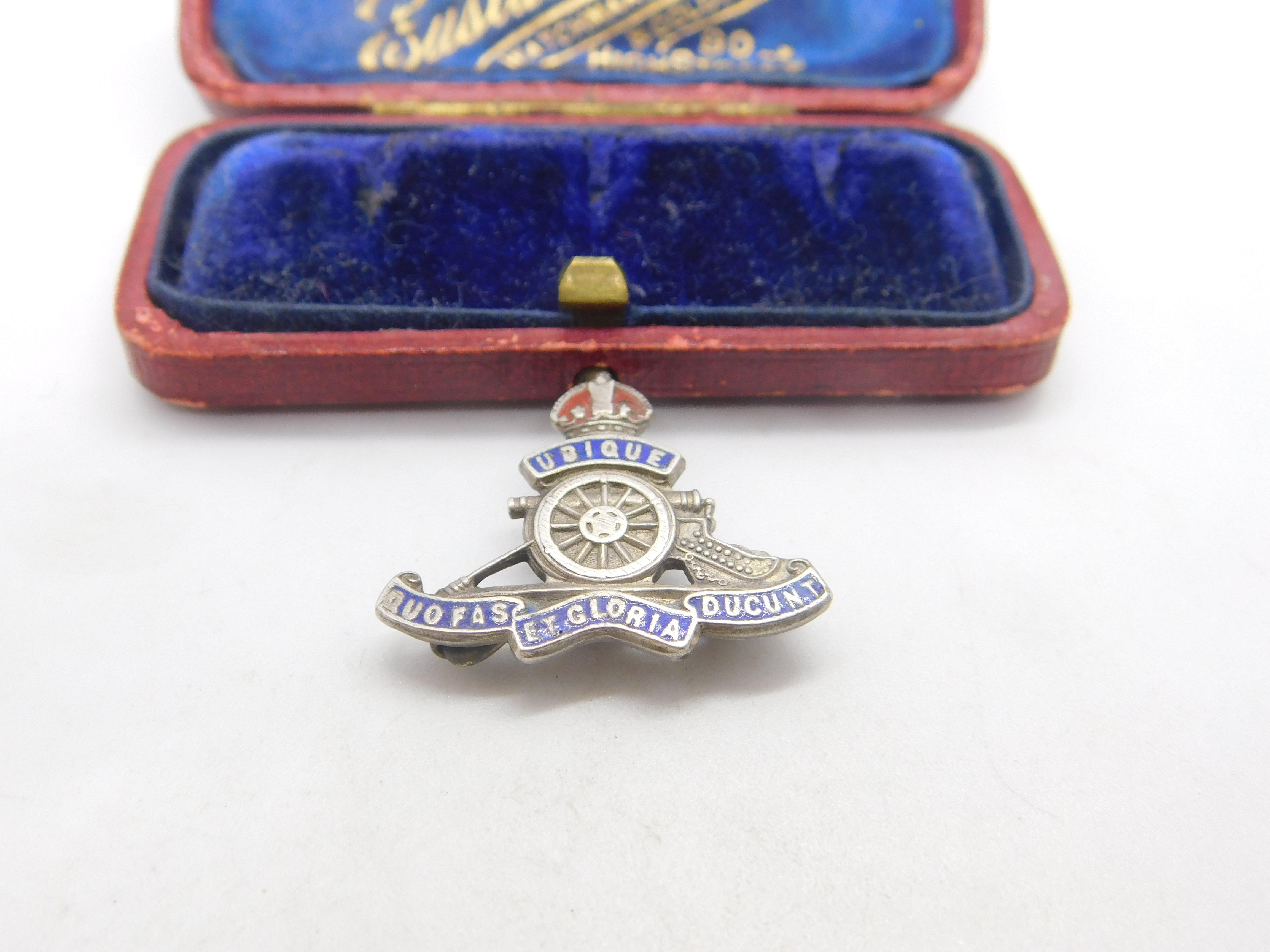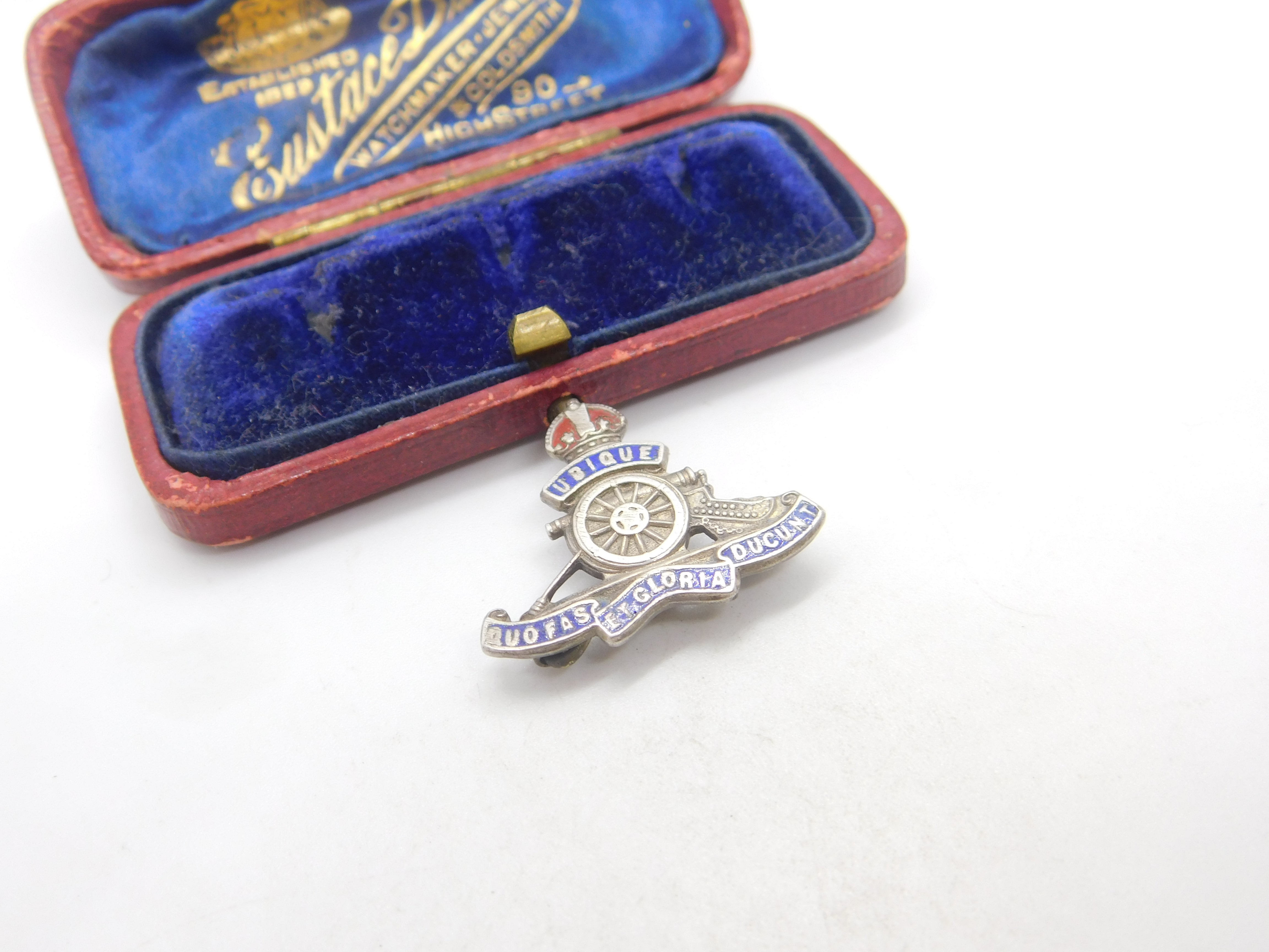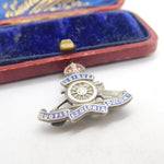 WWII Sterling Silver & Enamel Royal Artillery Sweetheart Brooch Antique c1940