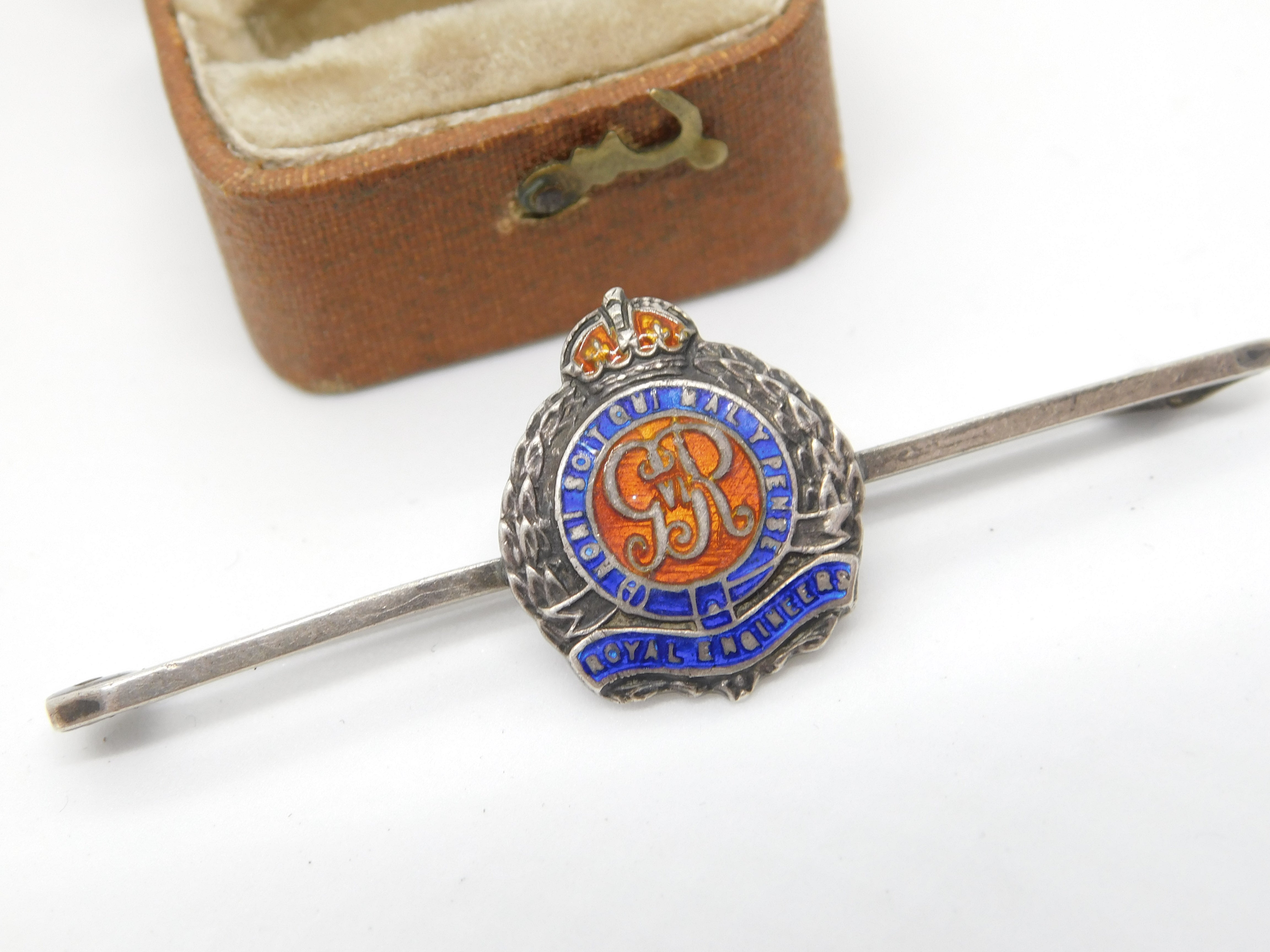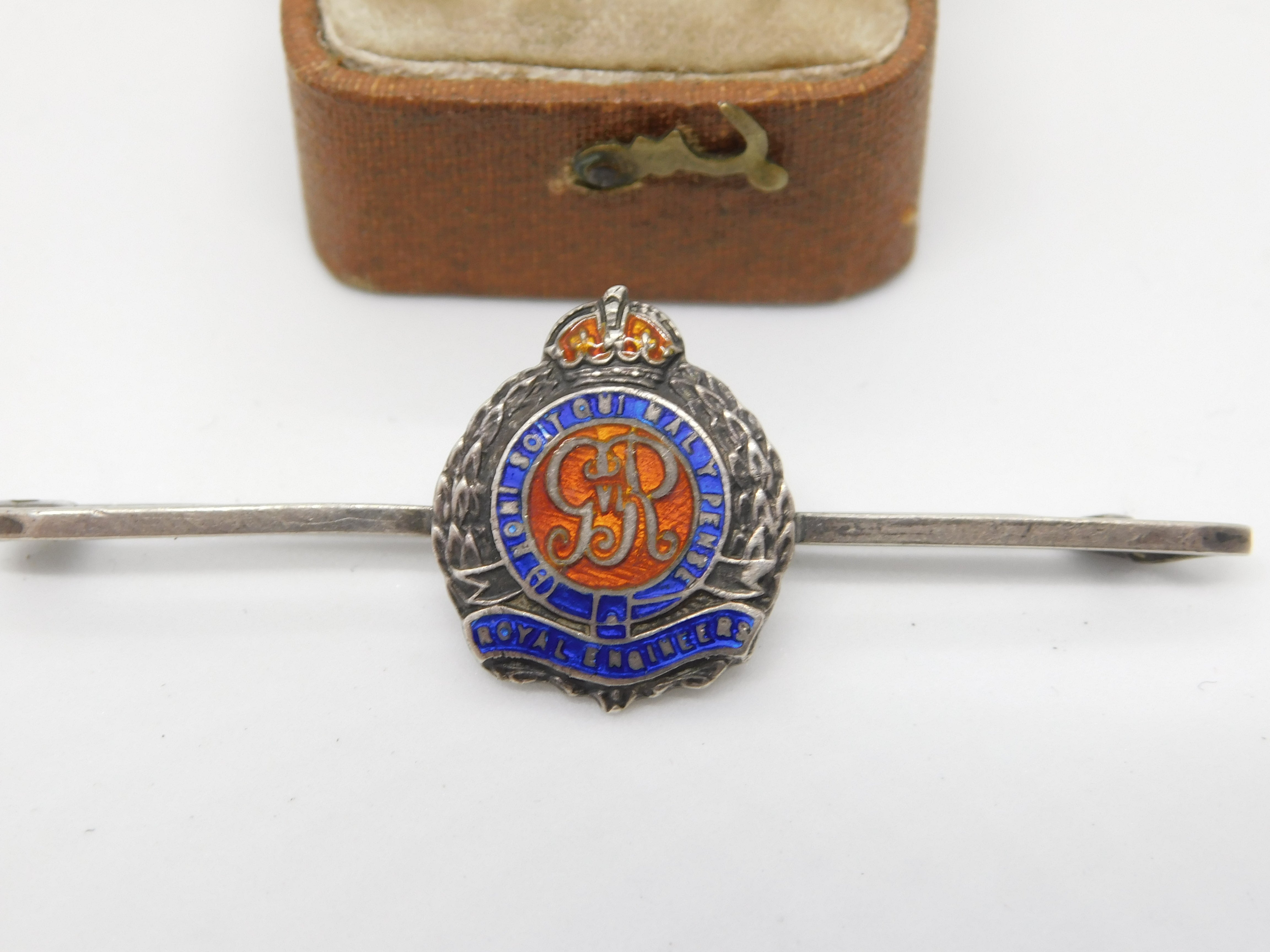WWII Sterling Silver Enamel Royal Engineers Sweetheart Brooch Antique c1940