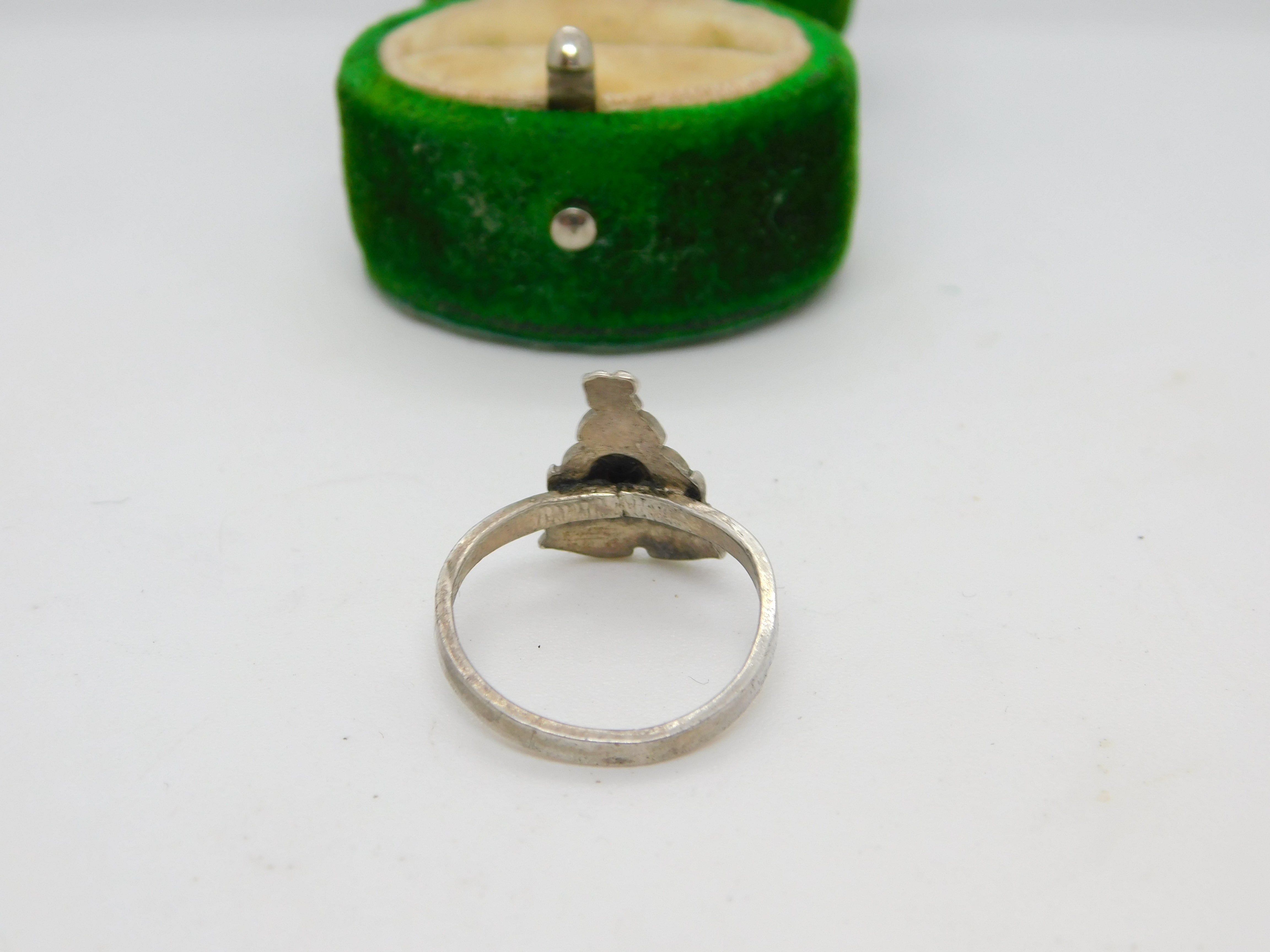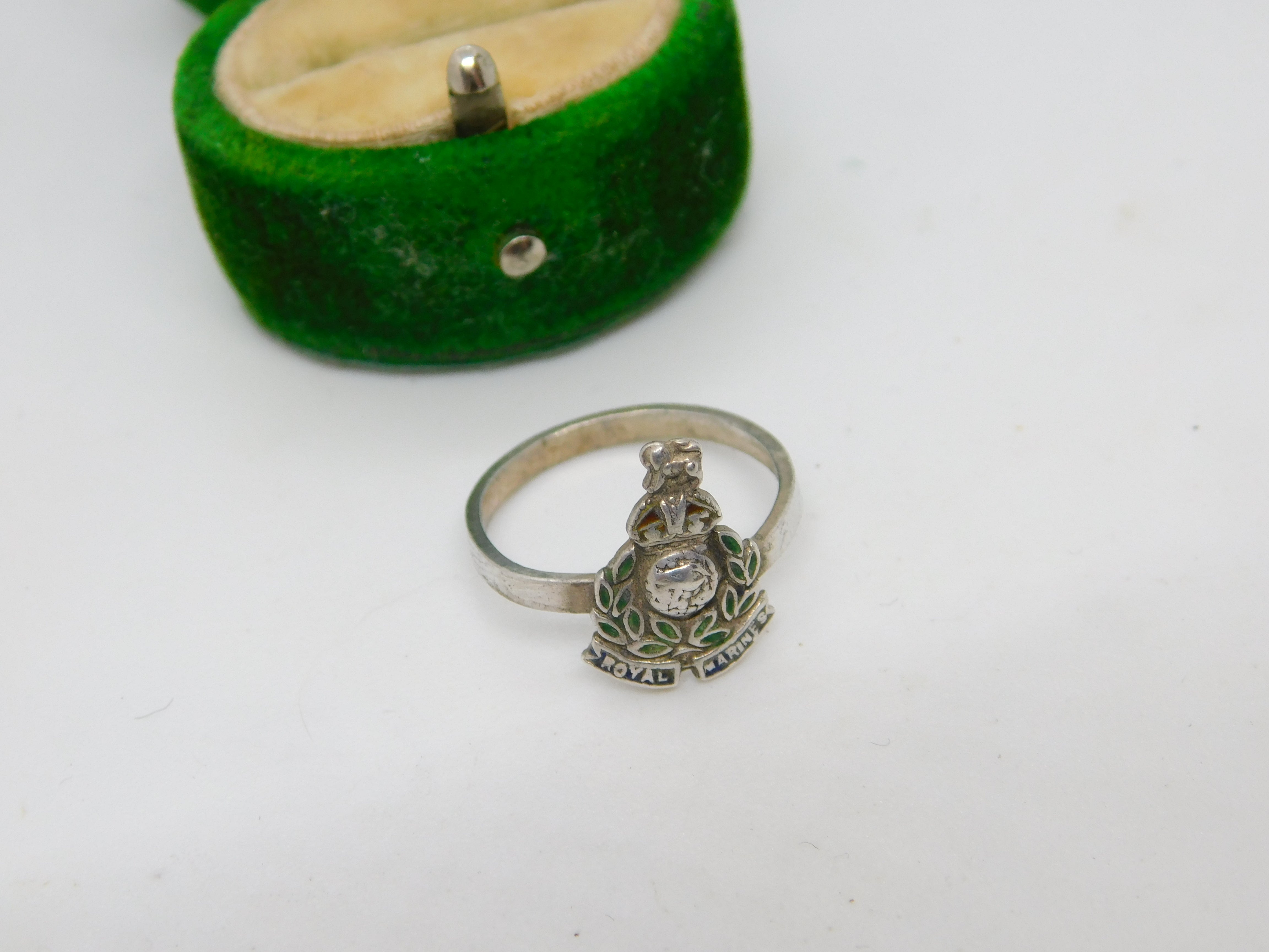 WWII Sterling Silver Enamel Royal Marines Sweetheart Ring Antique c1940