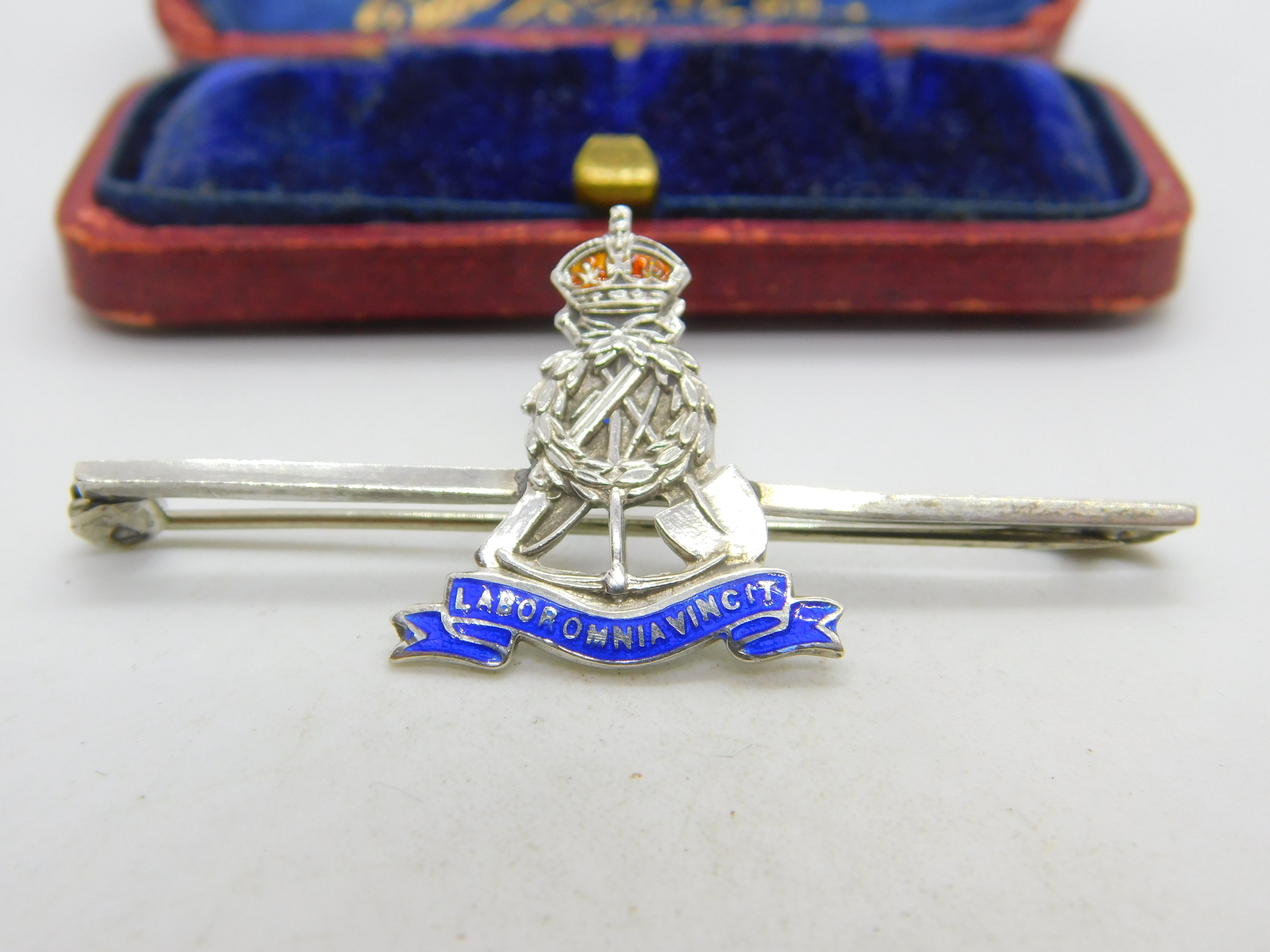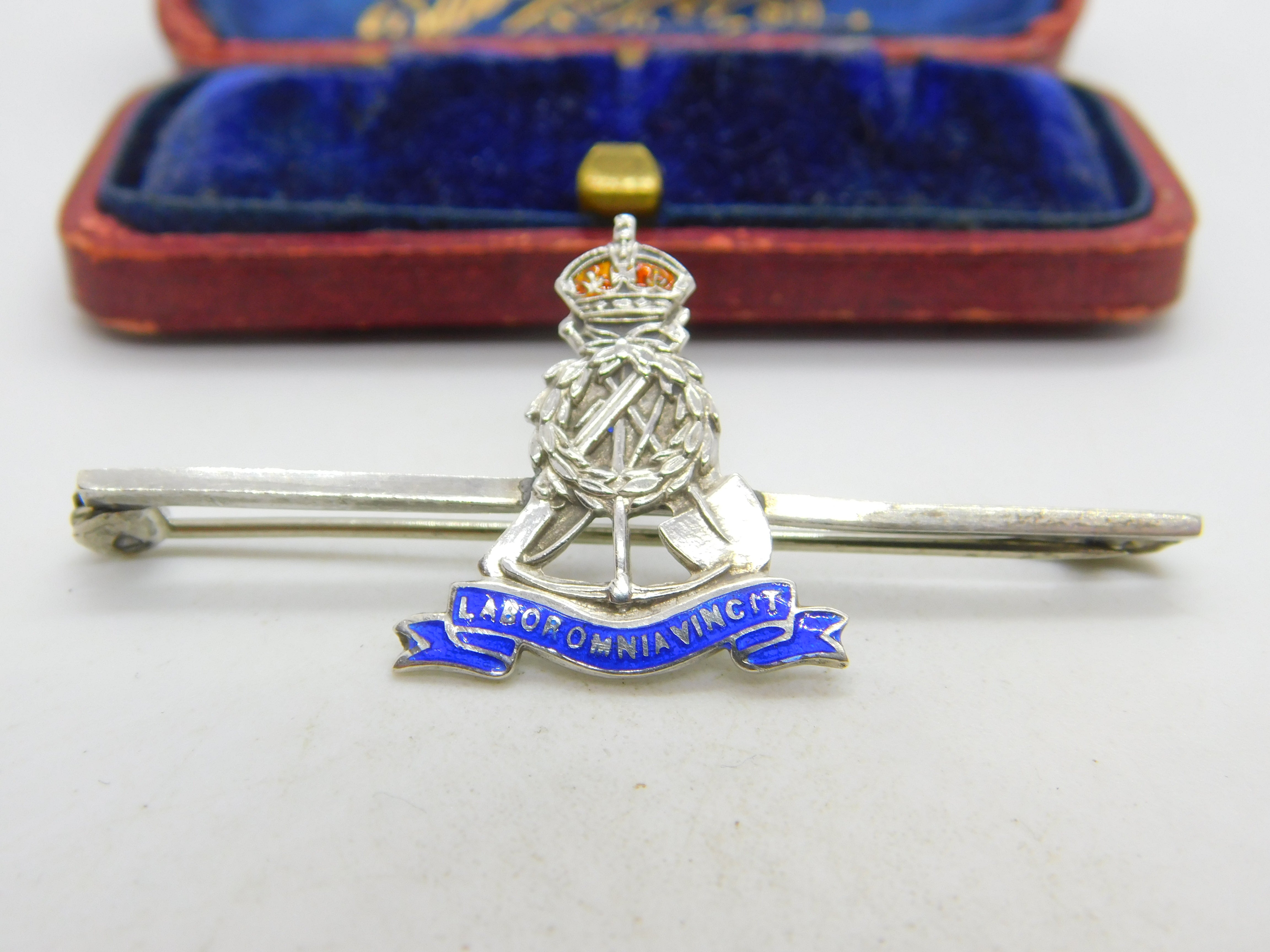 WWII Sterling Silver & Enamel Royal Pioneer Corps Sweetheart Brooch c1940