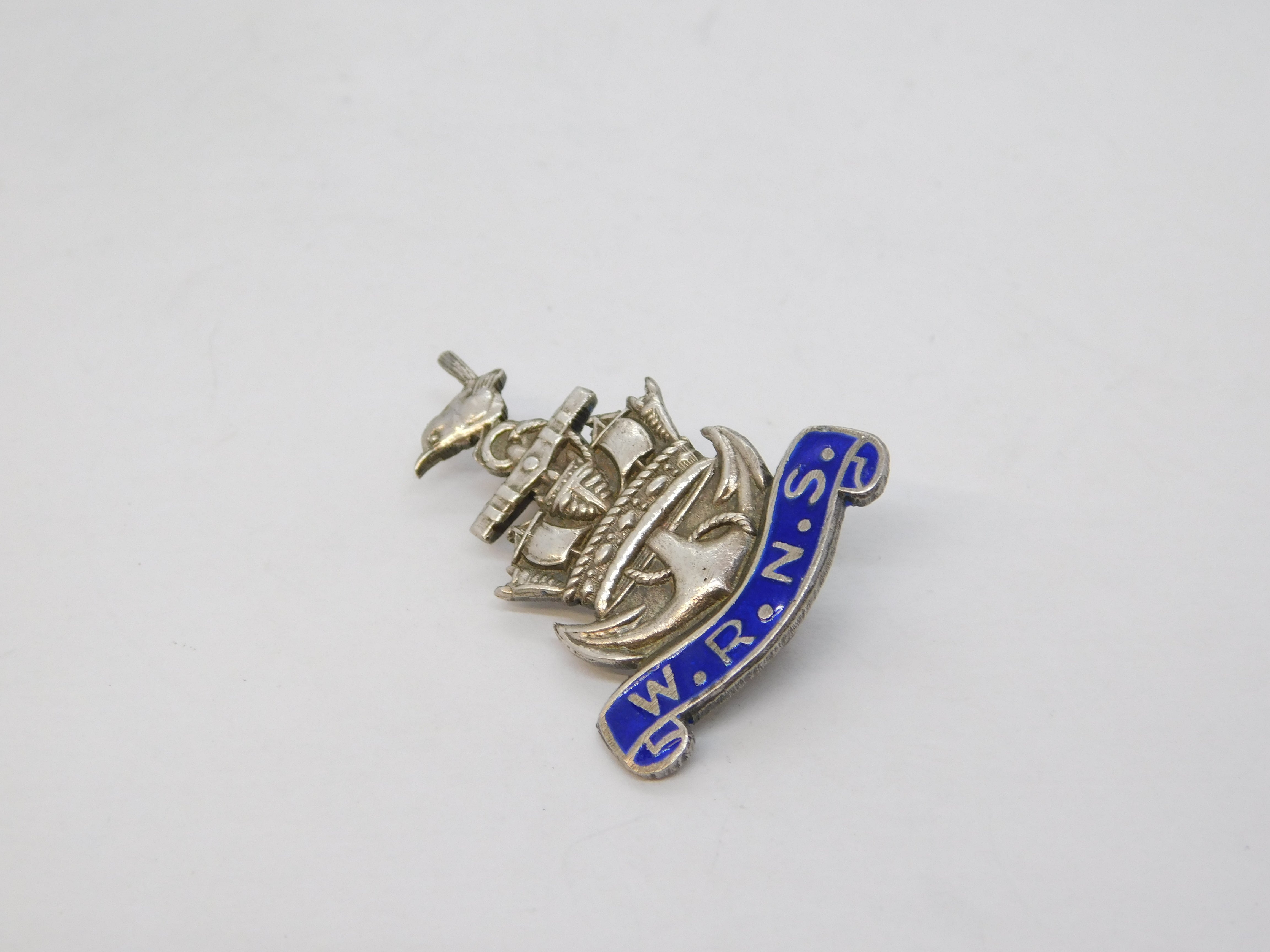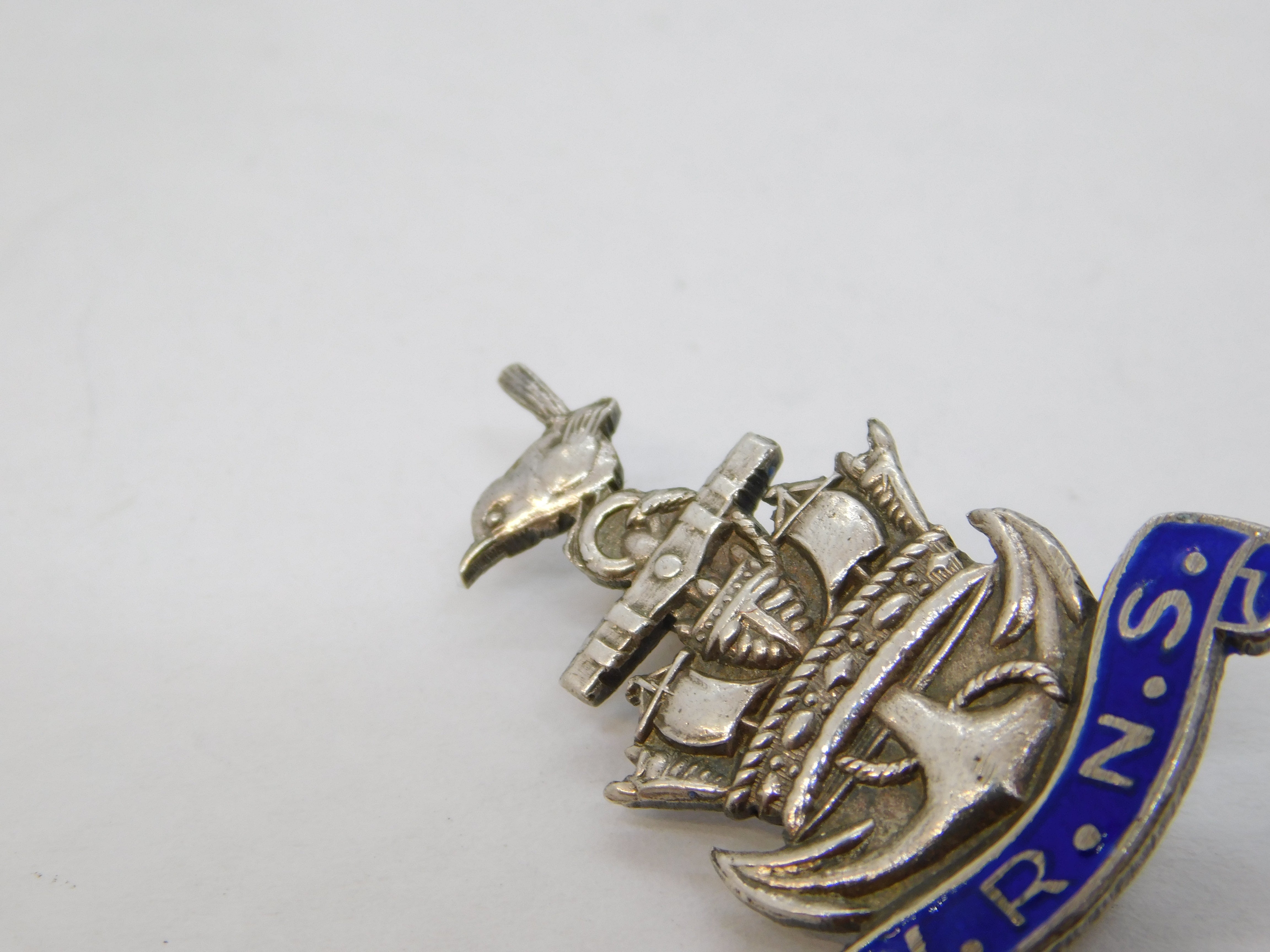 WWII Sterling Silver Enamel Womens Royal Navy Service Sweetheart Brooch Antique