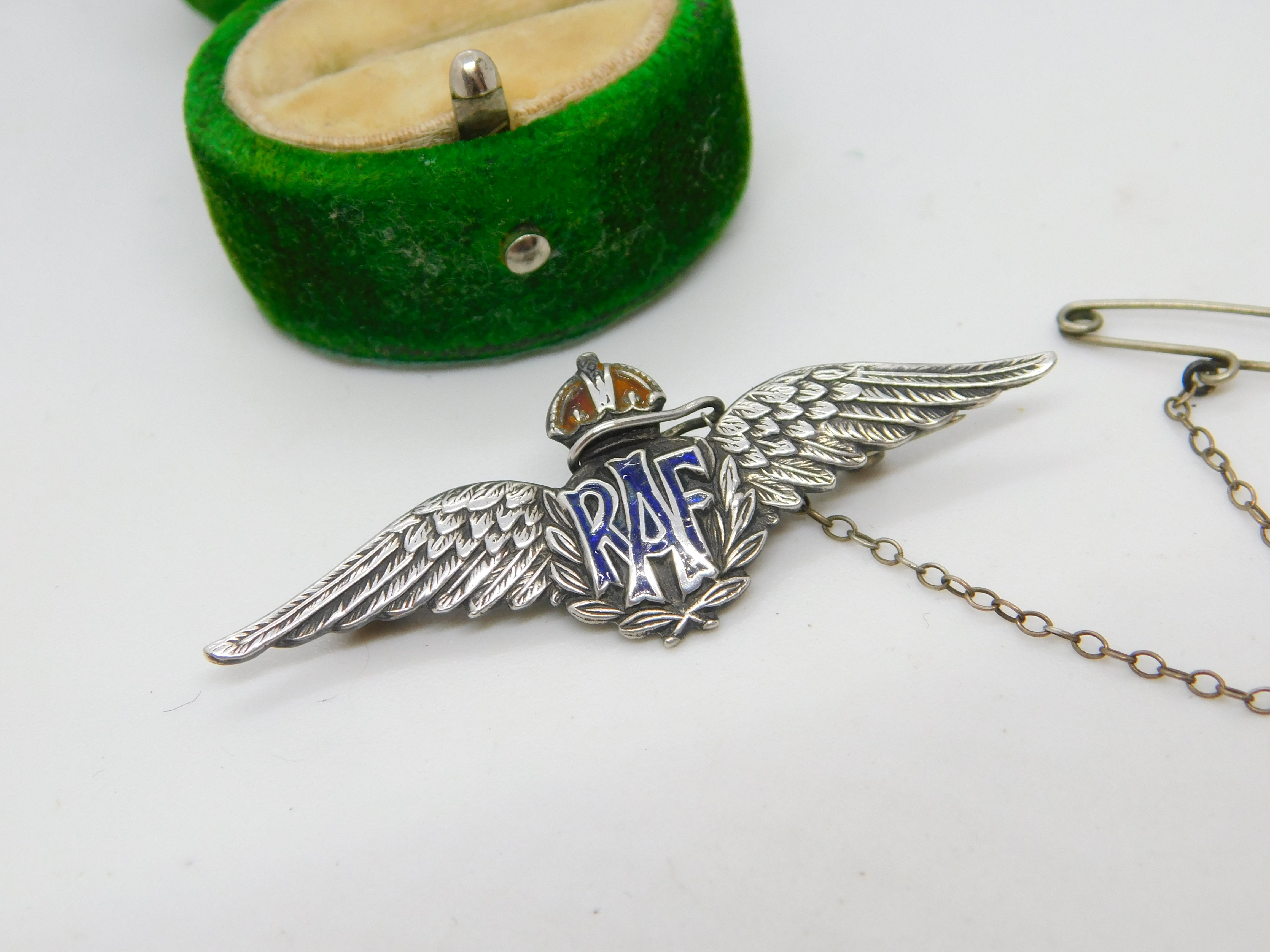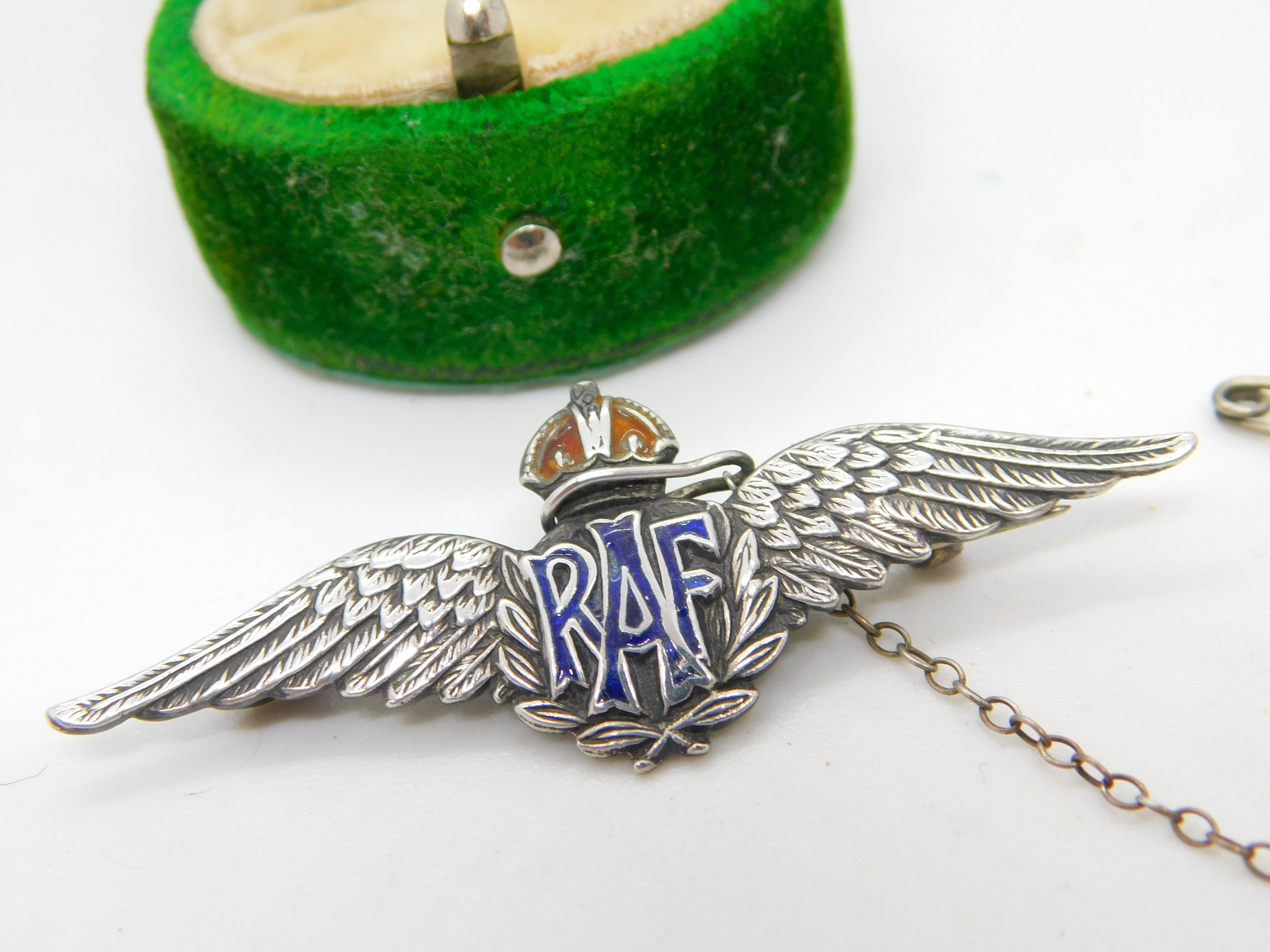 Details: A fantastic and wonderfully designed antique WWII sterling silver enamel RAF sweetheart brooch hallmarked to the reverse c1940. This is a wonderful item that would make a perfect gift or addition to any collection. The BOX pictured is for PRESENTATION ONLY and is NOT included in the listings but used to frame the pictures unless specifically stated otherwise.
